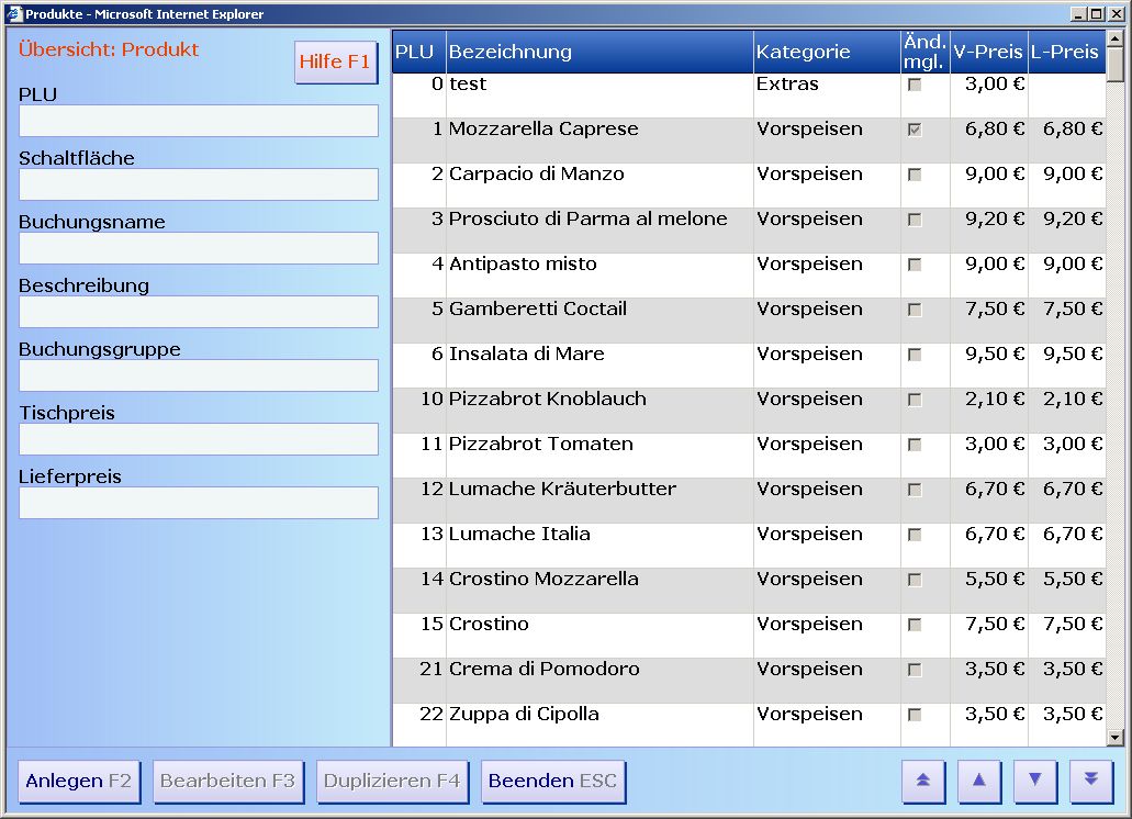 Produktetabelle
